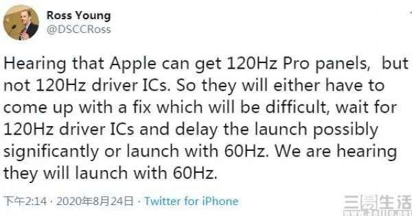 在此次延期或已对于苹果在秋季的新品营销与销售计划造成了一定影响的情况下,如果再继续等待屏幕驱动IC,则可能会彻底打乱节奏。不过对于用户来说或许高刷屏值得等待,因为在Ross Young发布的这条信息评论区中大部分网友都表示,为了120Hz的高新率,完全可以接受iPhone 12系列的延期发售。