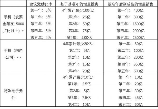 激励措施:印度制造商品销售量增量(基准年基础上)的4%至6%作为激励