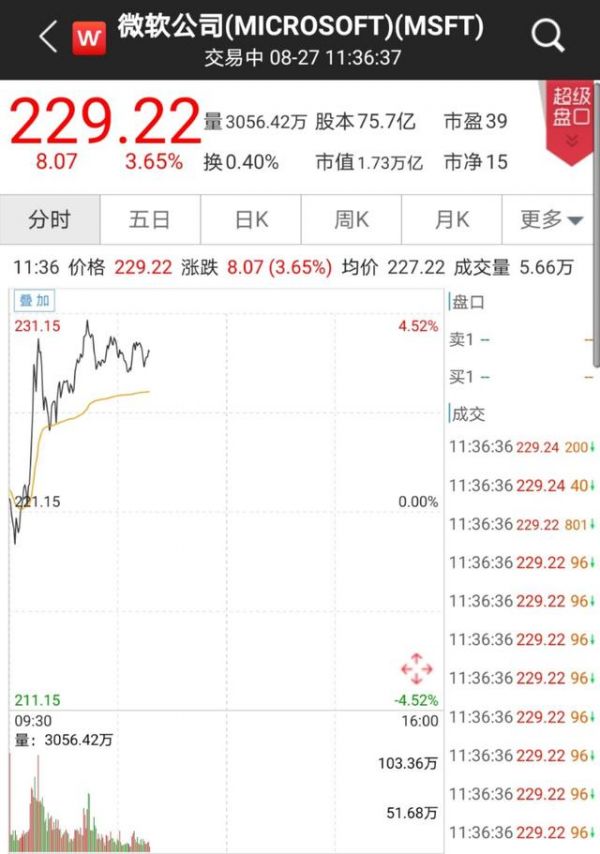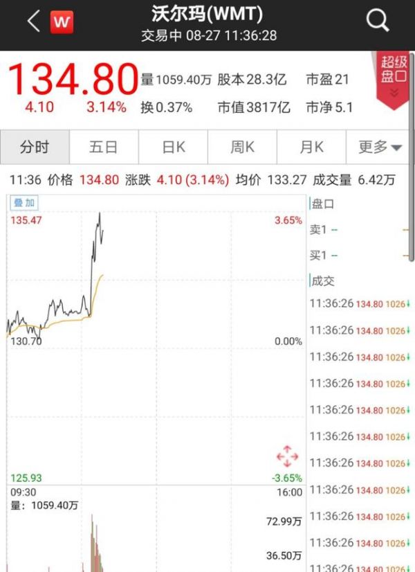 截至发稿,沃尔玛股价直线拉升至涨3%,目前微软涨近4%。