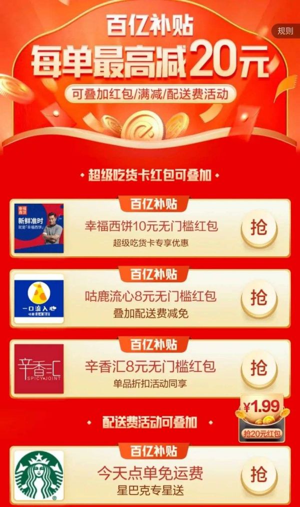 饿了么“百亿补贴”正式上线 覆盖扩展到100城以上
