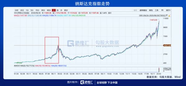 偏离经济基本面的大牛市、飞涨的科技股,不免使人联想到世纪之交的美国互联网泡沫。