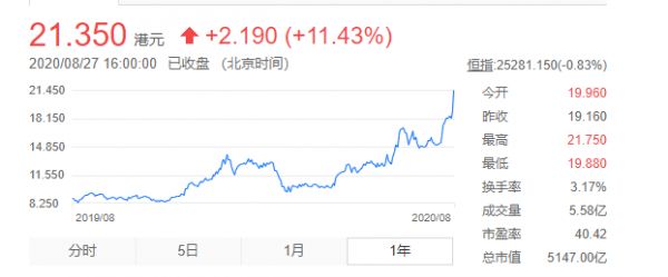 这些兴奋和讨论,都源于被称为“年轻人第一只股票”小米的股价大涨。8月27日,受益于2020年Q2季度及上半年业绩利好,小米股价大涨11.17%,收盘21.35港元,时隔两年后再次突破20港元,距历史高点22.2港元只差9毛钱,市值突破5147亿港元。