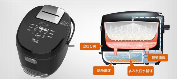 在煮饭的时候,当快消淀粉达到糊化温度并完成糊化时,就会融入米汤之内。这时,小甑低糖炊通过专利的负压水循环过滤系统,数十次过滤和沉淀快消淀粉,持续不断的最高可产生30%的抗性淀粉,这样煮出来的米饭基本滤除了快消淀粉,只含有直链淀粉和更高含量的抗性淀粉,升糖指数也就变得更低。