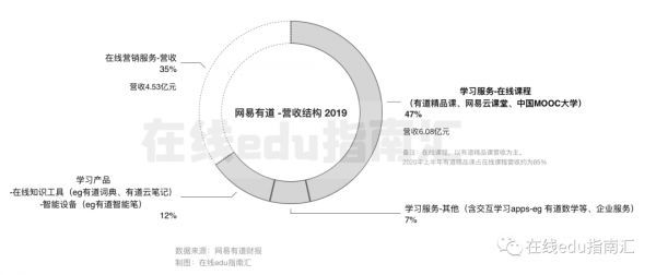 1)学习服务 - 在线课程(有道精品课Youdao Premium Courses 、网易云课堂、中国大学MOOC)。“在线课程”是“学习服务与产品”的核心收入来源,2019年“在线课程”占其营收为71%。