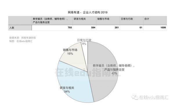 支撑起以上产品矩阵与策略,需要对应的人才结构与支出成本结构。2019年有道1699名人才,分布在: