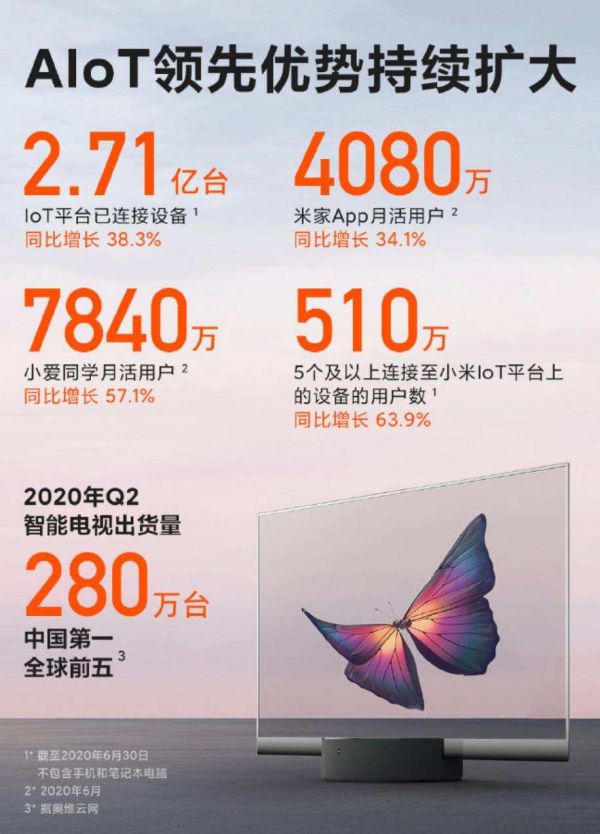 作为当前小米核心战略,AIoT继续保持着增长速度,小米IoT平台连接数达2.71亿台同比增长38.3%、米家App月活达4080万同比增长34.1%、小爱同学月活7840万同比增长57.1%。