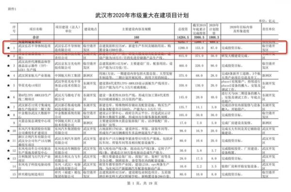 根据《武汉市 2020 年市级重大在建项目计划》,截至 2019 年,武汉弘芯项目的已完成投资达到了 153 亿元,武汉弘芯也是 2018 年武汉单个最大投资项目。