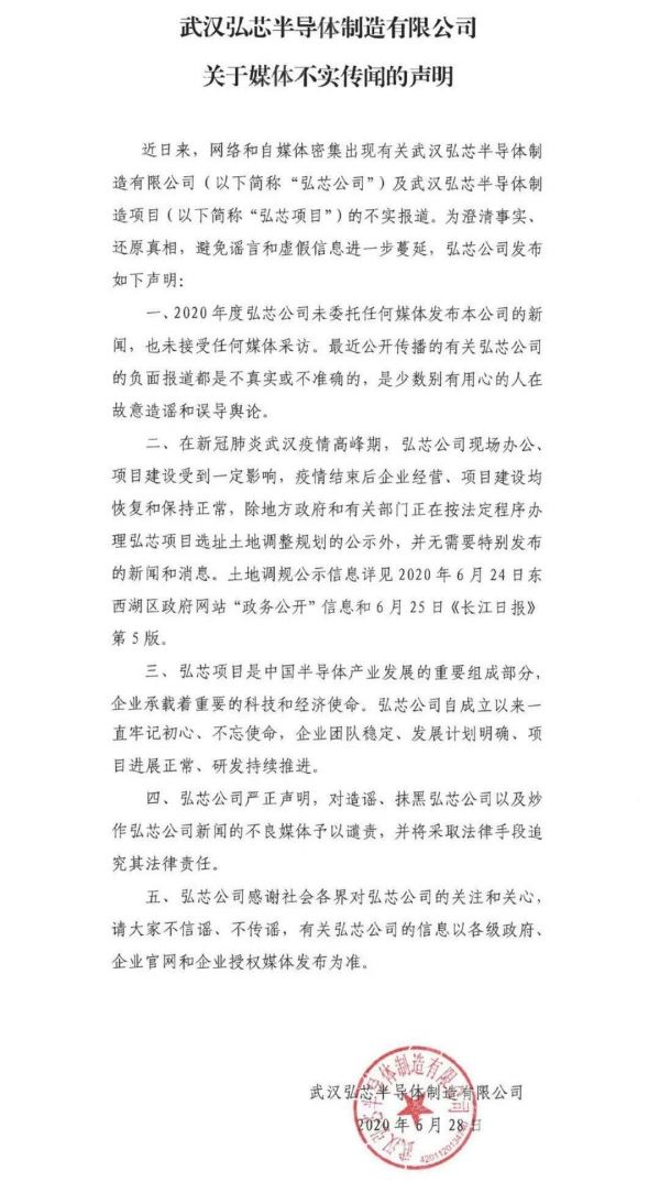 在媒体对此事进行报道之后,武汉弘芯陷入了舆论危机,大量批评指责纷至而来,而弘芯也在第一时间作出了回应。