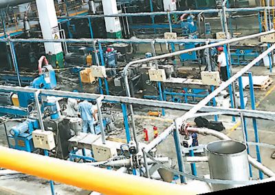 珠海万通化工有限公司塑料改性车间内,工人正在忙碌。董学腾摄