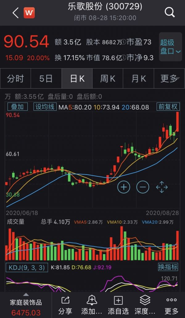 8月28日,乐歌股份更是以20%的涨幅涨停,股价也已经创下历史新高,报90.54元/股。