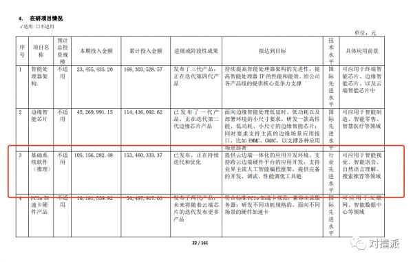 寒武纪研发的项目一共有8个,包括芯片架构、云端和边缘端芯片、推理和训练系统、硬件平台和加速卡等产品。