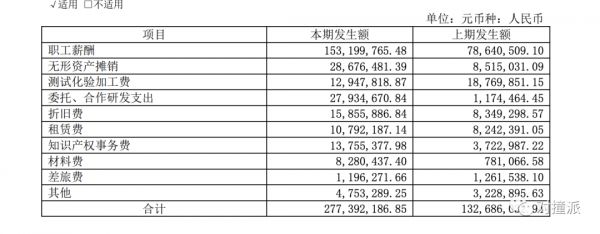 在寒武纪列出的各项支出中,研发投入是最多的——2020年上半年,研发投入2.8亿元,是营收的318%。相当于每天投入了152万。