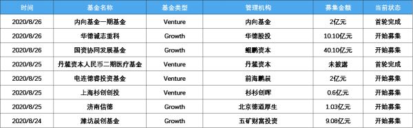 另外,内向基金一期基金、丹麓资本人民币二期医疗基金两支基金也分别于本周完成首轮募集。前者专注于消费升级领域的股权投资,首轮完成过亿人民币募集;而丹麓资本人民币二期医疗基金则将持续专注于创新型医疗技术的早期和成长早期投资。