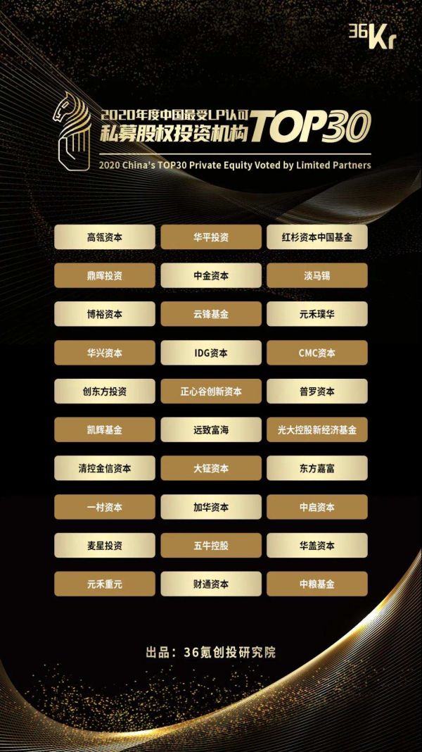 重磅!36氪联合50家LP,“中国最受LP认可投资机构”暨“中国黑马基金10强”榜单发布