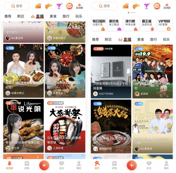 大众点评首页的直播频道,目前直播功能没有正式向个人用户开放