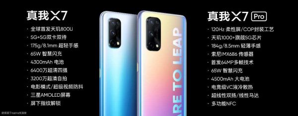 其中realme X7首发了联发科天玑800U芯片;realme X7 Pro搭载的则是天玑1000plus,亮点在于屏幕是一块120Hz的柔性直屏、拥有240Hz触控采样率,屏幕所采用的全新E3发光材料,峰值亮度可达1200nit。