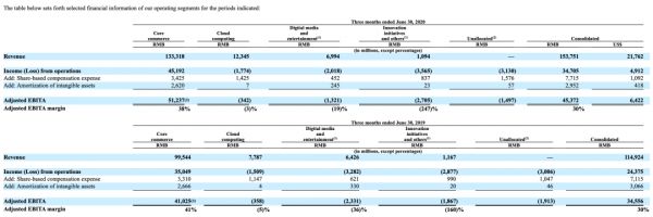 财报显示,阿里大文娱营收为69.94亿元,较上年同期的64.26亿元增长9%;运营亏损为20.18亿元,较上年同期运营亏损32.82亿元有大幅改善。相应的,EBITA的利润率也大幅度改善,从截至2019年6月30日止三个月的-36%变更为截至2020年6月30日止三个月的-19%。
