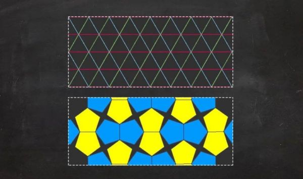 正三角形、正方形都可以无缝隙密铺空间,但正五边形却无法做到这一点。素材来源:J Athreya et. al & Wikipedia;图片设计:雯雯
