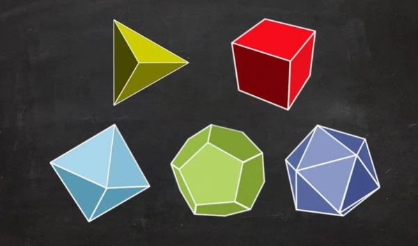 但是当从二维提升到三维谈论正多面体时,相等的性质除了边和角之外,正多面体上的每个面也必须都相等。与正多边形不同的是,正多面体的种类并不是无穷多个,而是最终可被分为五种:正四面体、立方体、八面体、二十面体和十二面体。