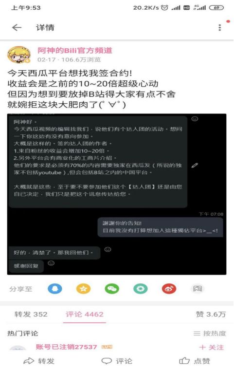 之后,西瓜视频和B站之间的矛盾越演越烈,甚至有UP主爆料自己遭到西瓜视频挖墙脚,对方表示签约后收益可能会增加10-20倍。以人气大up主敖厂长为代表,已有部分UP主开始往西瓜视频迁移。