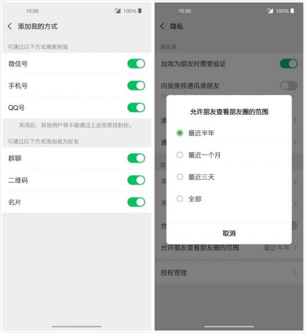 三天可见朋友圈、朋友圈分组、黑名单,还有最近加好友时的“仅聊天”选项、对添加方式的限制,都是在解决这种复杂但又无法摆脱的境况。