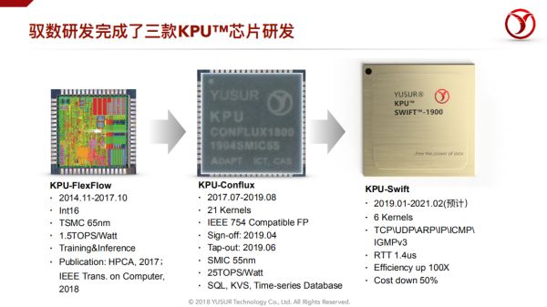目前,中科驭数已完成了三款KPU™芯片的研发,分别为:KPU-FlexFlow、KPU-Conflux、KPU-Swift等,并且完成了多代KPU板卡的迭代和量产。