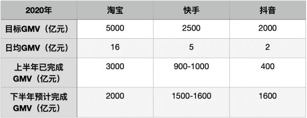 36氪从多位消息人士处获悉,2020年淘宝直播目标GMV(即总成交额)预计为5000亿元。此前36氪曾报道,快手电商的GMV目标已调高至2500亿元,而抖音为2000亿元。