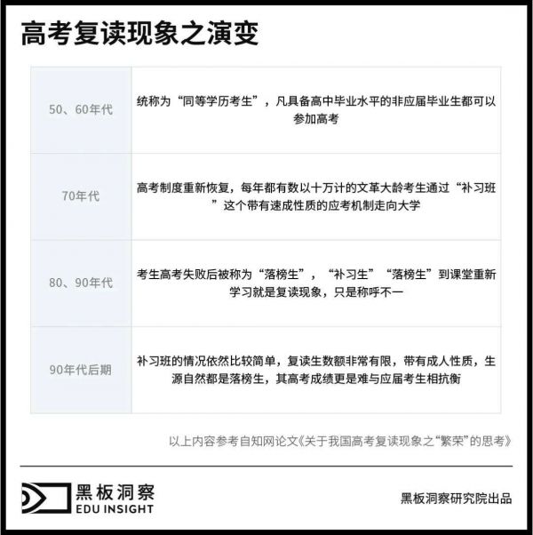 高考复读现象从高考制度建立起就出现了,最早也许可以追溯到上个世纪的“补习班”现象。