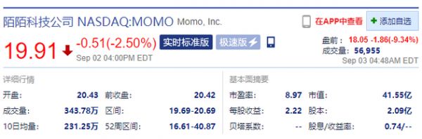 陌陌开盘跌9.19% 二季度营收不及市场预期