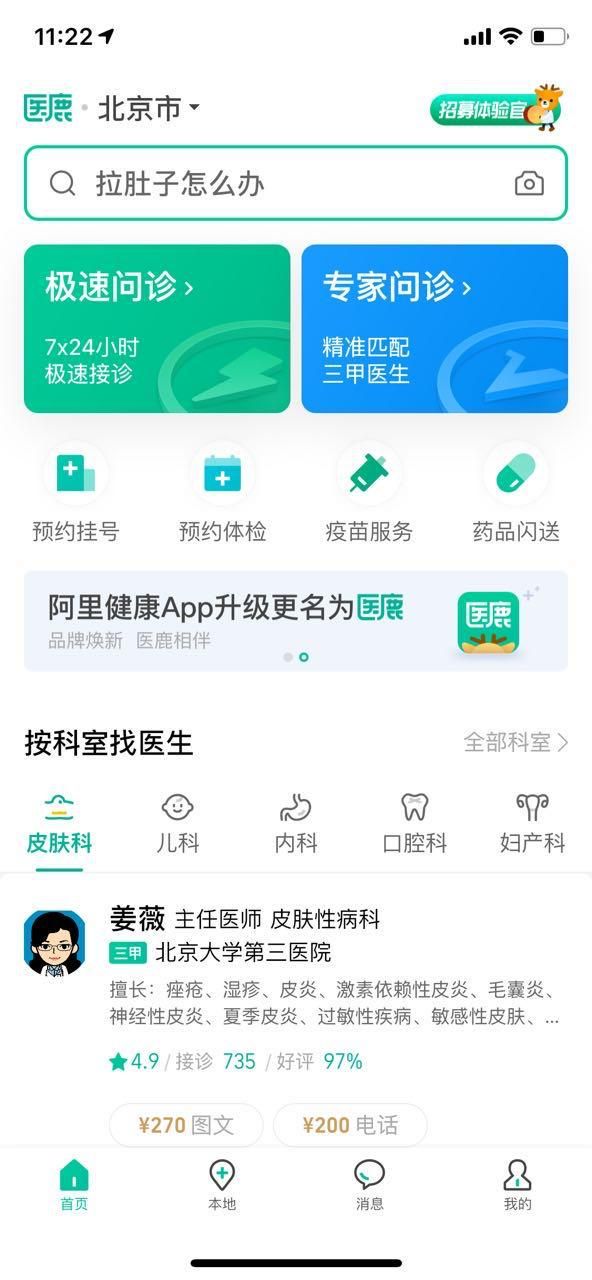 目前,“医鹿”围绕用户常见的医疗需求,为用户提供线上问诊、挂号、疫苗、体检预约和药品闪送等互联网医疗健康服务。