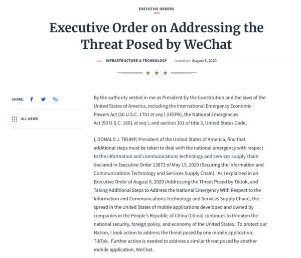 美国时间8月6日晚上,美国华人的微信群与朋友圈陷入了一片慌乱。几乎所有人都在讨论关心同一个话题:微信到底会不会被封杀,没有了微信该怎么办?就在这天晚上,美国总统特朗普接连颁布两道行政命令,以国家安全为名,在45天后封杀中国两大移动互联网应用TikTok和微信。