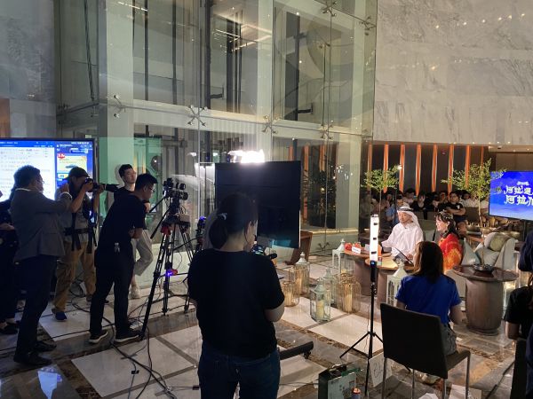 45分钟的阿联酋地区酒店播完后,梁建章和孙天旭在短短几分钟内匆匆转场,直播场景也切换到了实景的酒店大厅,接下来是上海当地的酒店、美食等产品的介绍。