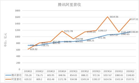 图:阿里、腾讯2018年以来的营业收入