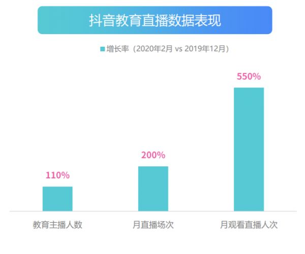 疫情期间“停课不停学”,为在线教育公司带来巨大的流量红利,让教育信息化企业有了极好的产品大力进校机会。入选空中学堂直播平台,为字节系带来了教育品类流量的快速激增。其中抖音月观看教育直播人数更是提高550%。