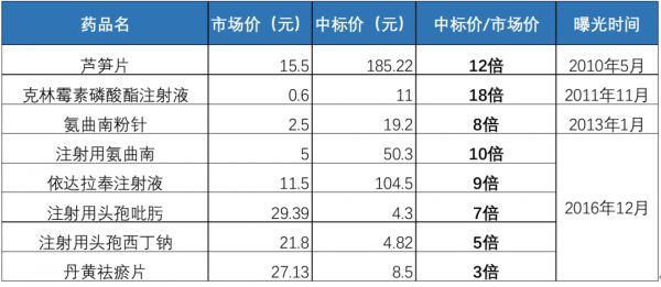 在招标中,许多药品的真实出厂价只有中标价的10%、20%,称为10扣、20扣。同一种药品,在安徽太和、广东普宁等批发市场上的价格,与到医院的价格可能相差10多倍。2010年湖南曝出天价芦笋片,湘雅二院采购价(中标价)是出厂价的13倍。但在闻卓的从业观察里,比这夸张的案例还有许多。