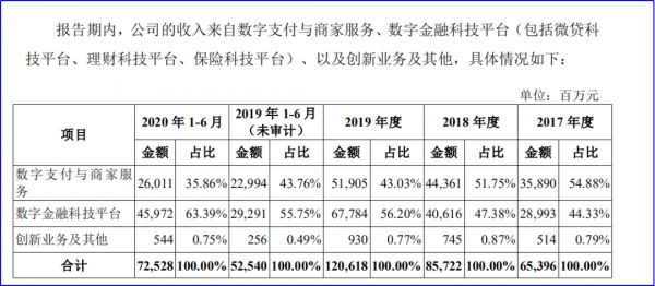 拆解蚂蚁招股书:科技服务营收占6成,支付、信贷、理财、保险各项业务市场排名领先