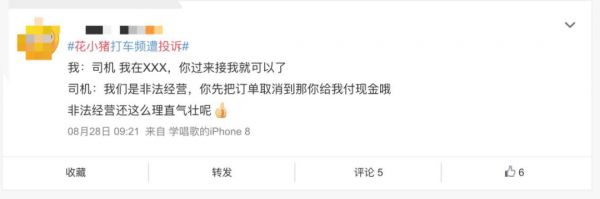 在社交平台上,关于花小猪打车的吐槽帖子有不少,甚至有乘客表示在使用花小猪时,被司机要求脱离平台线下交易,“我们是非法经营,你先把订单取消,到目的地你再给我付现金。”