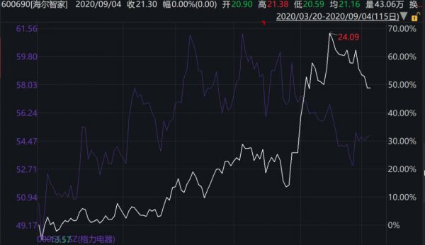 资本市场对于海尔这一动作,用脚投票,股价上涨了40%,大幅跑赢同期的美的、格力。