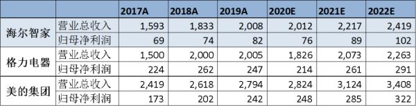 图2:家电三巨头收入、利润对比。资料来源:万得资讯