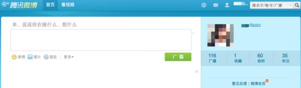 9月6日,当深燃财经尝试登陆腾讯微博,发现页面长时间处于加载状态,好不容易页面加载完毕,发现只剩下“首页”和“看视频”两个主功能,原有广播和听众记录已全部被清空。