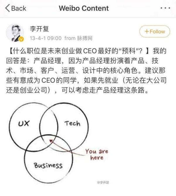 从国企离职前,他在公号文章里写道,“随着对产品经理岗位认知越深刻,我越发地发现,自己简直就是为这个岗位而生……如果能够成为一名产品经理,在这个行业奋斗,播撒热血,那将是我这辈子在职场所选的,最最正确的方向”。