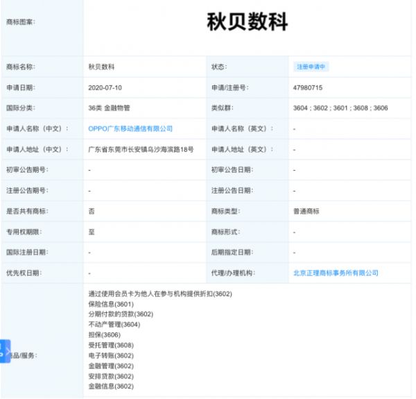 目前,安卓版的秋贝金融APP也已上线;新流财经还发现,今年7月,OPPO提交了注册“秋贝数科”商标的申请。