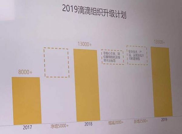 与此同时,今年,滴滴将在安全技术、产品和线下司机管理及国际化等重点领域加大投入,继续招聘2500人,2019年年底员工总人数将和去年底的13000人持平。