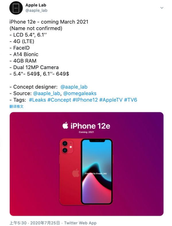 4G版iPhone 12是iPhone XR的继任者,也是采用全面屏设计的新款iPhone SE Plus。当然,这些都只是外界的猜测。不过,可以肯定的是,苹果确实会推出这款机型。