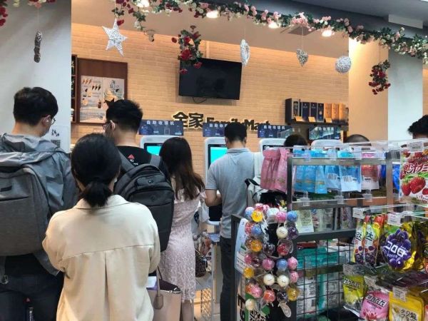 而一位全家用户告诉记者,某一次她在全家看到整个便利店中只有4台自助机在运作,没有人工收银。不懂如何操作的老人,拿了物品后不得不放回。