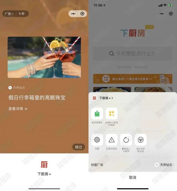知晓君最近在打开某个小程序时,就看到一个 5 秒开屏的小程序广告——这和 app 的开屏广告颇为相似。只是不同的是,app 开屏广告错过就没办法点击查看了,小程序开屏广告点击右上角「...」还能看到封面广告的更多信息。