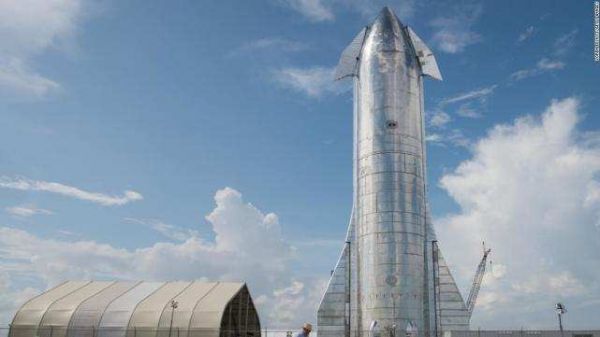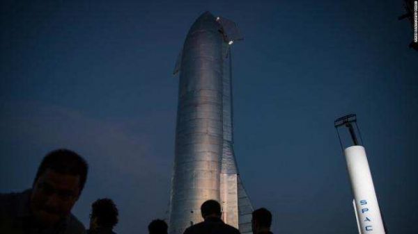 2019年9月28日,在德克萨斯州布朗斯维尔附近的博卡奇卡,SpaceX星际飞船原型被拍到竖立在发射设施中