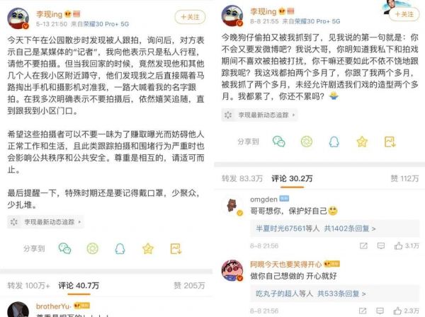 早在2020年5月13号,艺人李现就在微博发声警告代拍不要影响公共安全和他人生活,相隔2个月后,又再次针对代拍行为发声警告。