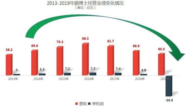 不过从2015年开始,长宽逐渐走下坡路,净利润不断下滑,2018年净亏损1.86亿元,2019年则巨亏26.4亿元。