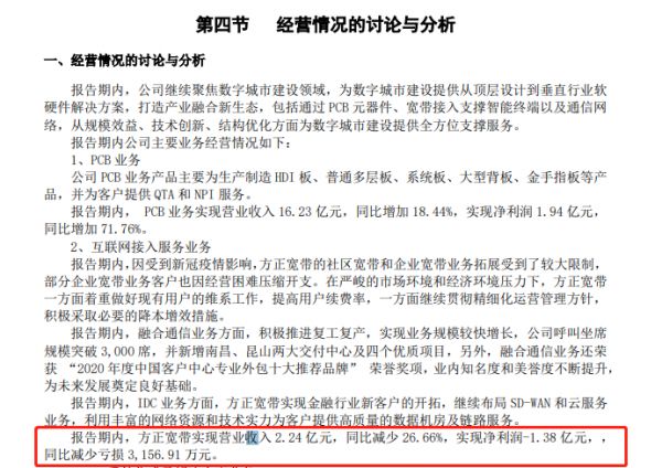 总而言之,鹏博士的脱身,意味着民营宽带最大一面旗帜正在倒下,这是民营宽带这些年的缩影。在两年前,国内最早一批出现的老牌宽带运营商艾普宽带因为资金链断裂而倒闭。另一家民营宽带商——方正宽带现在也处境艰难,据控股方方正科技发布的2020年上半年财报显示,今年上半年方正宽带实现营业收入 2.24 亿元,同比减少 27%,亏损1.38 亿元。